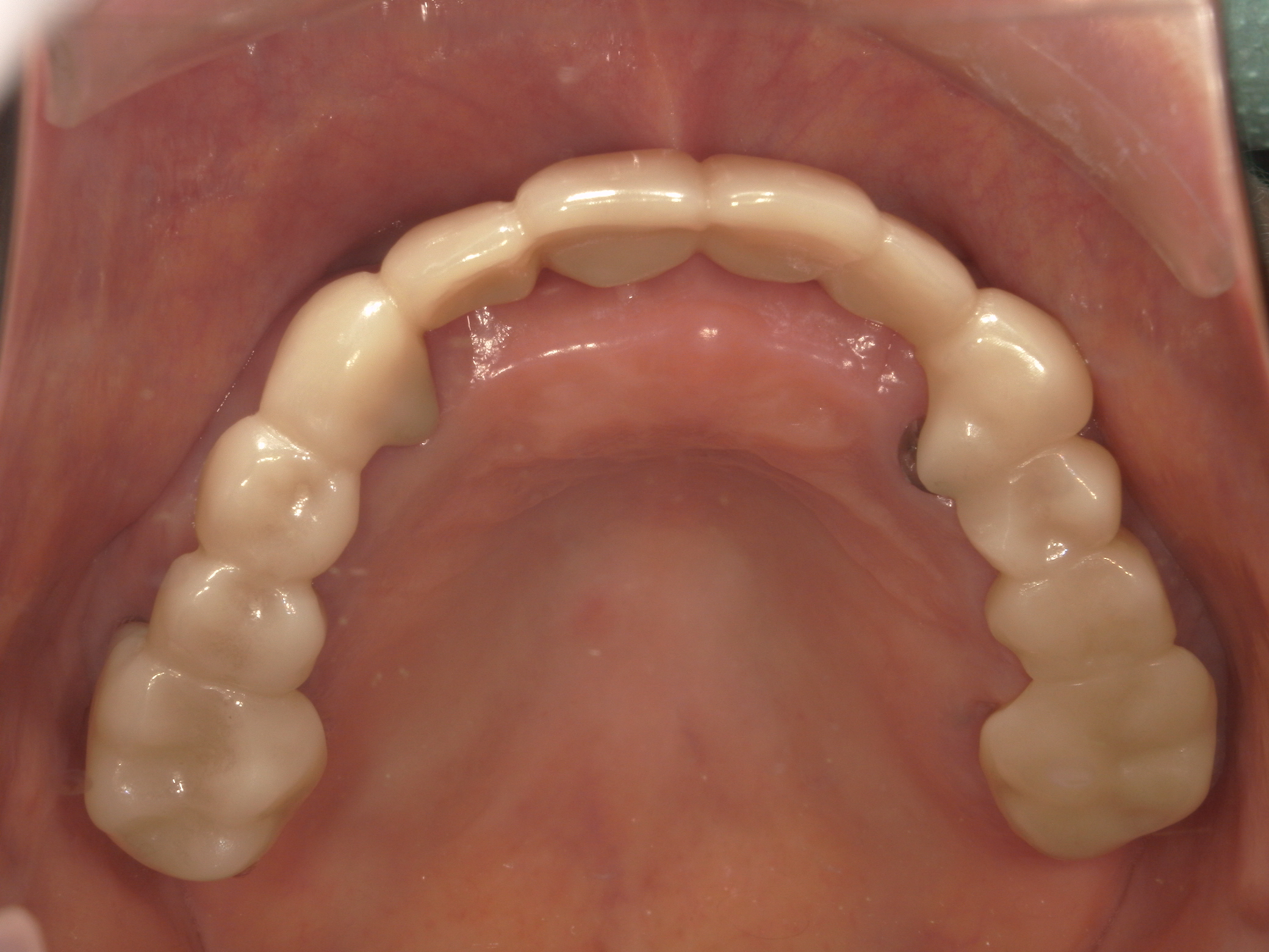 同じ方は不可能なので、モノリシックジルコニアで右上6~左上6の12本ブリッジへ |
