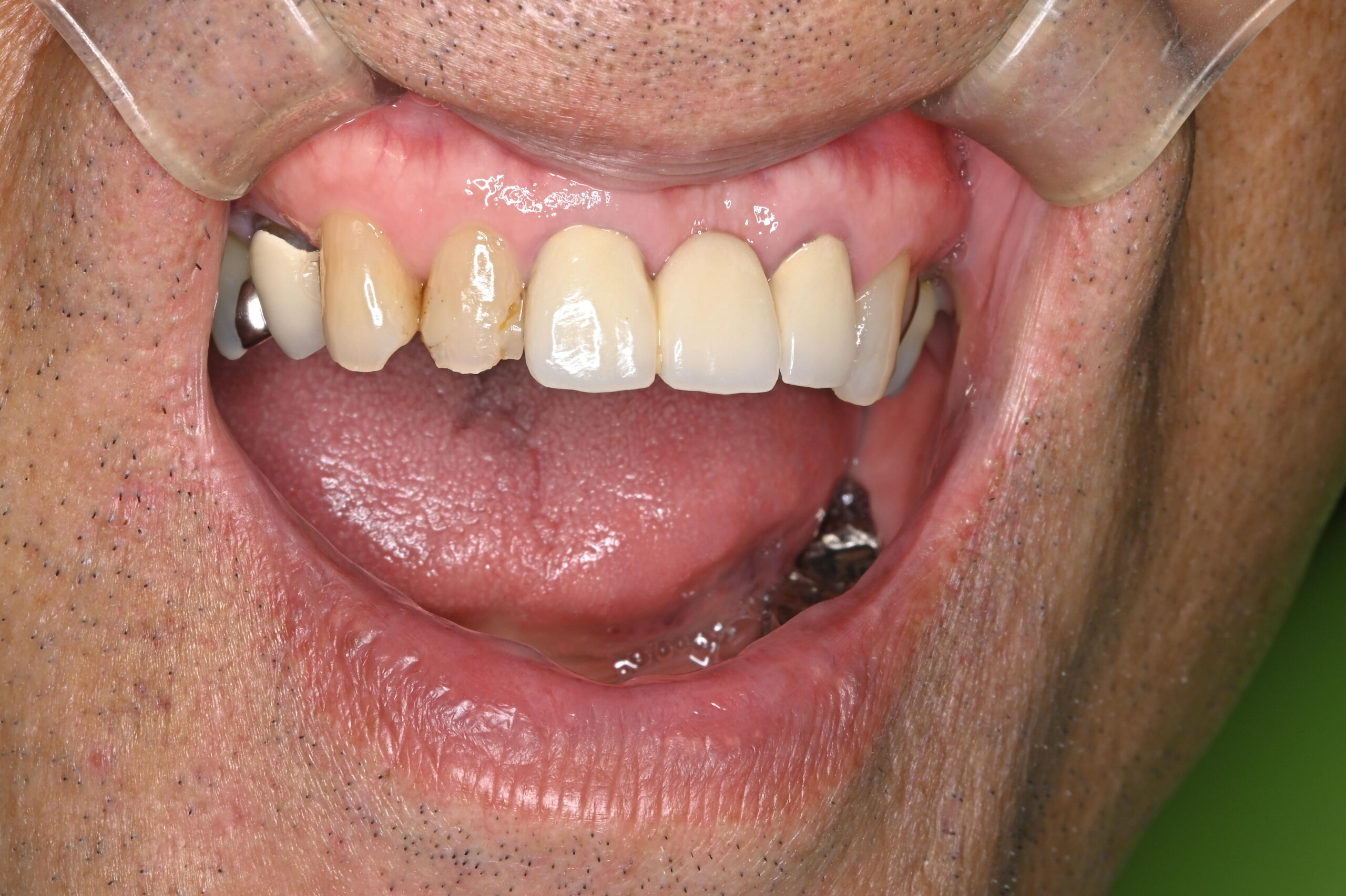 右上側切歯(右上2)の切縁が欠けていて、位置が少し内側に入っているのも気になるとのこと